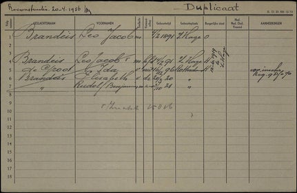 Register Den Haag 1930 Ida, Leo & Kinderen